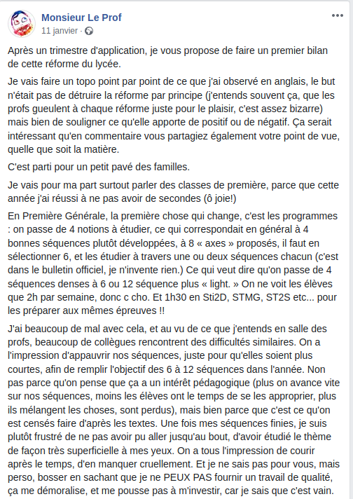 Le 11 janvier 2020, Monsieur de Prof a fait un petit topo de la réforme. Je n’ai pas besoin d’en rajouter ou de présenter son post, tout est dit: