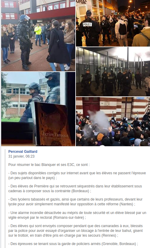 Heureusement, un peu partout, des manifestations se mettent en place. Seulement là je ne parle pas des grandes manifestations des gilets jaunes et des syndicats qui sont à peu près relayées dans la presse, je parle des manifestation de professeurs, d’ATSEM, d’enseignants de tout bords, de personnel pédagogique. Celles-là sont tues par les médias et le gouvernement. Avez-vous entendu parler des stylos rouges ? Des gens qui restent debout devant les rectorats ? Avez-vous vu dans la presse les blocus dans les lycées ? Mh, pas trop je crois. Je m’en rends bien compte car j’ai autour de moi des personnes qui ne lisent que la presse (Le Monde, le Parisien…) et ne regarde que la TNT (vous vous reconnaîtrez la famille ;-)), et qui du coup, subissent de plein fouet la censure du gouvernement.