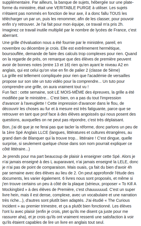 D’abord enseignant d’anglais au collège, il l’est depuis en lycée. Cette réforme, il l’a prise en plein dans le pif comme tous les autres professeurs et tous les autres élèves.