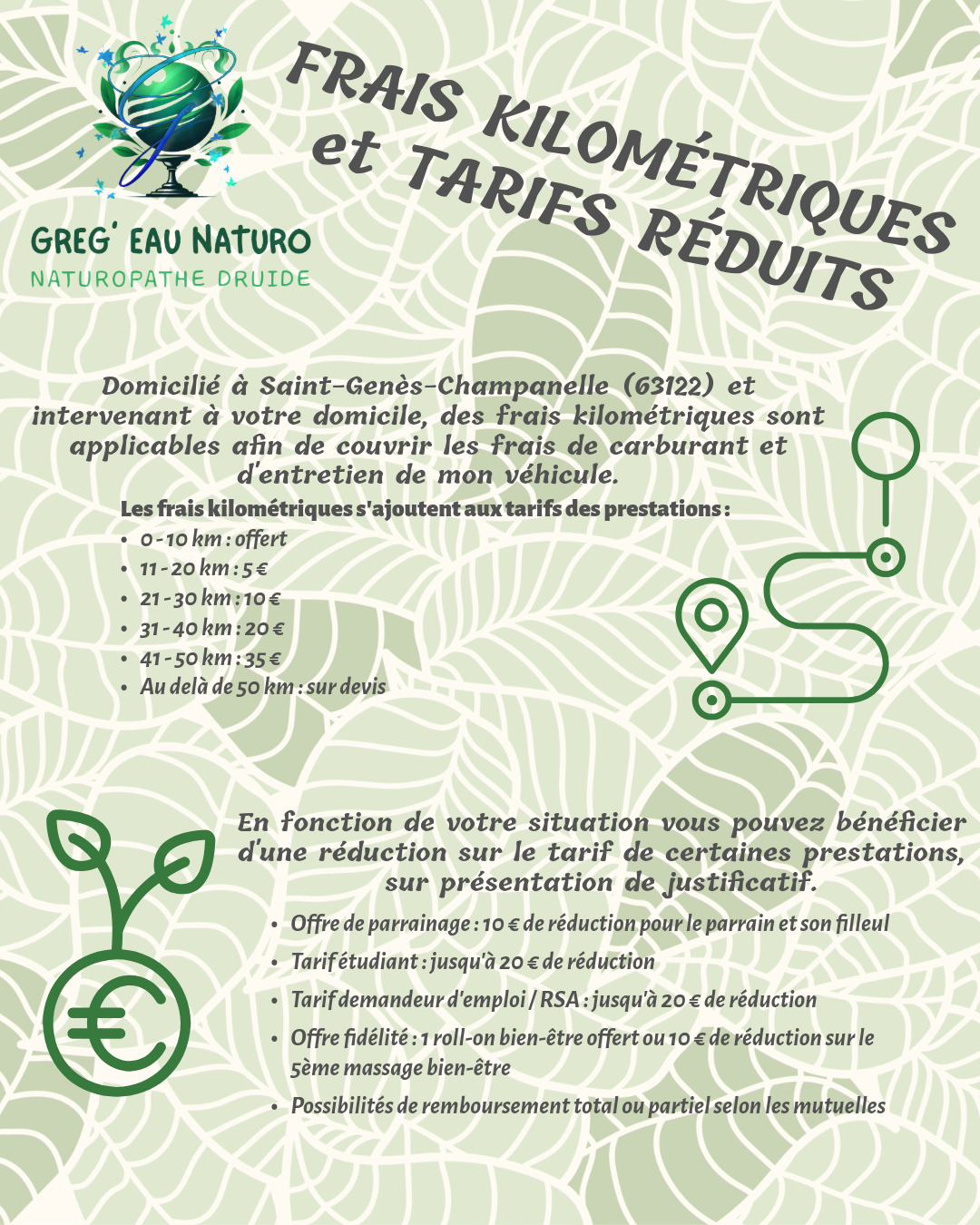 Tarif étudiant : 20 € de réduction, sur présentation de justificatif (valable pour bilan holistique, séance de suivi, massage bien-être, soin énergétique / magnétisme)